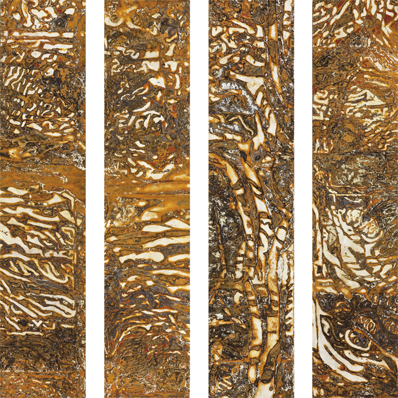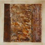 Es gibt Bildobjekte, da befindet sich die rostige Folienseite auf der Bildvorderseite, bei anderen ist sie dem Bildträger zugewandt. Manchmal ist der Bilduntergrund farbig gehalten und scheint durch die Rostfolie.